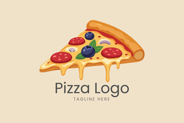 Delicious Pizza Slice with Pepperoni and Veggies Vector logo template