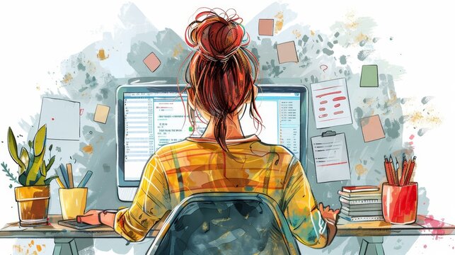 Talented freelance illustrator generates creative ideas for her upcoming project.