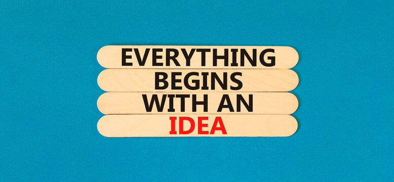 Everything begins with an idea symbol. Concept word Everything begins with an idea on wooden blocks. Business everything begins with idea concept. Copy space.3D rendering on blue background.