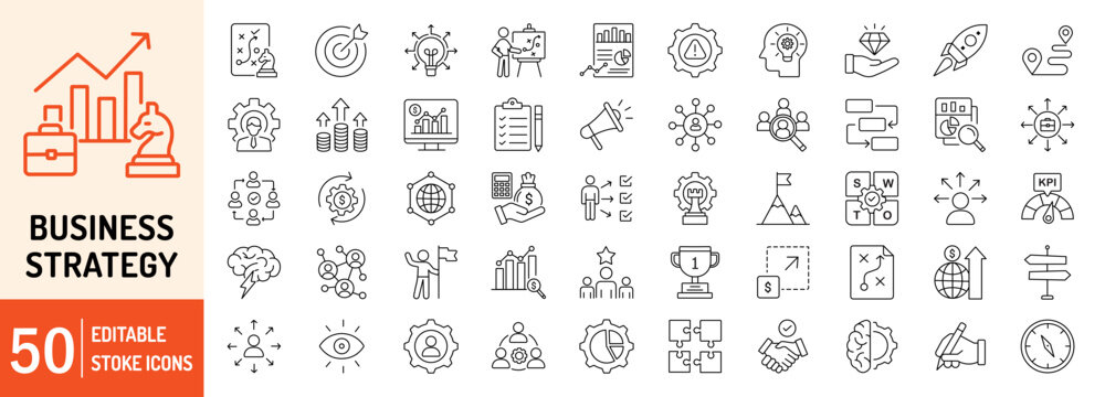 Business Strategy collections editable stroke outline web icons set. Vector illustration