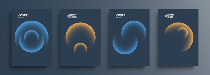 Set of graphic templates with abstract shapes. Futuristic backgrounds with dynamic circle shapes and soft blurred gradient. Vector illustration.