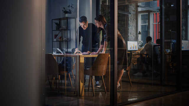 Indoor shot of creative team discussing ideas in business meeting. Multi ethnic business people working together on new project in office.