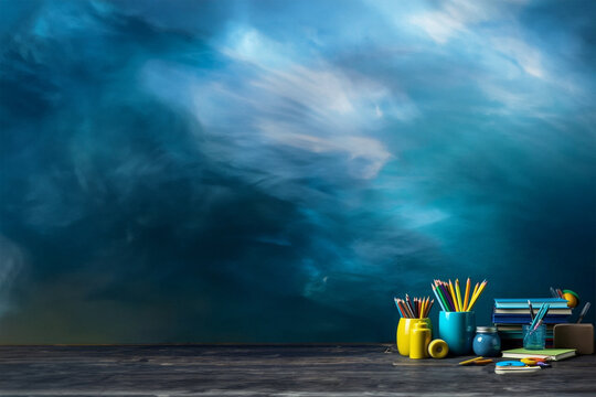 Art supplies creative colorful stationery tools lifestyle education modern composition