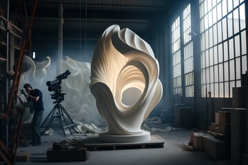 Modern sculpture in the making in a big bright studio, Generative Ai