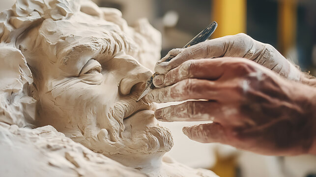 Asian woman, clay studio and painting design of ceramic sculpture product, creative manufacturing and workshop. Painter, pottery artist and brush mug, pattern process and production in small business