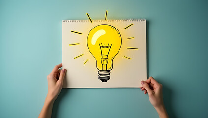 Bright ideas and creative concepts emerge from brainstorming sessions with a simple lightbulb symbol on note paper._00003_