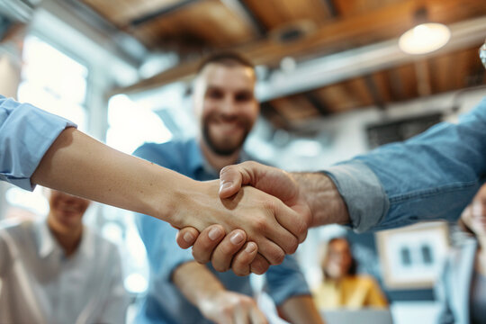 Collaborative teamwork concept with six hands holding blank vintage paper for creative projects
