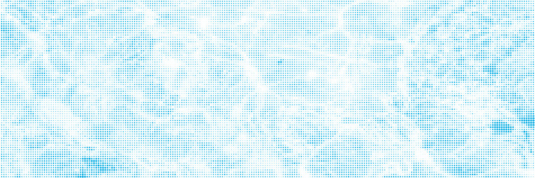 Halftone overlay resembling water waves. White dot texture on blue background. Vector banner for design and creative projects.