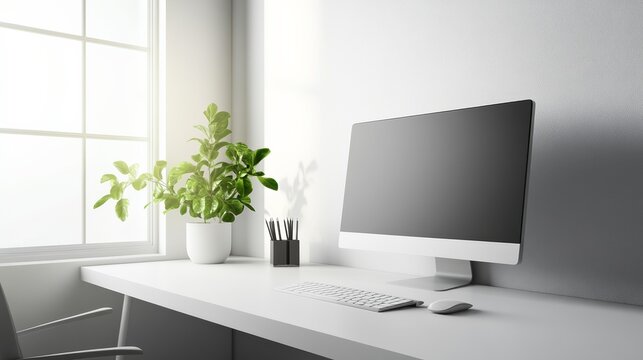 Modern graphic design studio corner showcasing clean, minimalist aesthetics and creative workspace design.