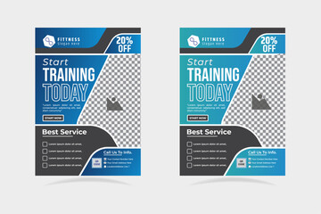Professional Gym Fitness Flyer set, Brochure design, cover layout, annual report, poster, flyer in A4 with business proposal, promotion, advertise, body builder template.