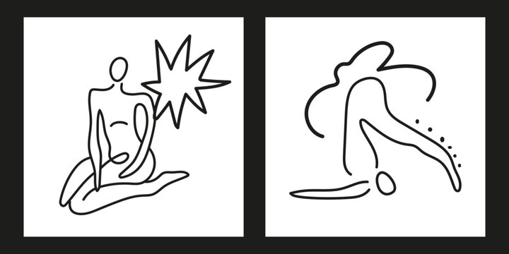 Minimalist trendy abstract posters collection. Linear body illustration. Modern vector template for design, logo for yoga studio. Decor for wallpaper, walls, print and postcards