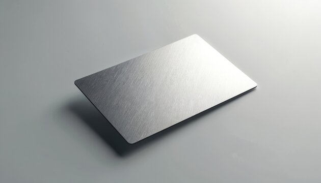 Elegant metallic card with brushed texture on minimal white background. Clean, modern design. Realistic polished surface for corporate business branding advertising. Simple, stylish contemporary