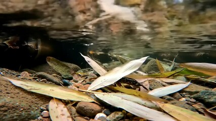 Pebbles underwater, colorful, smooth, varied sizes, shallow