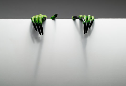 Cartoon Zombie Party Sign with Skeleton Hands and Owl