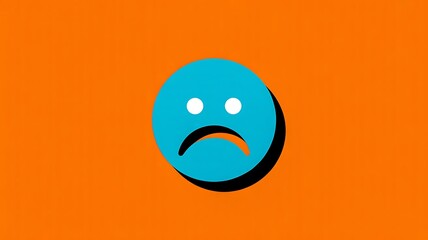 A blue frowning face emoji on an orange background with a shadow effect creating a sense of depth and emotion