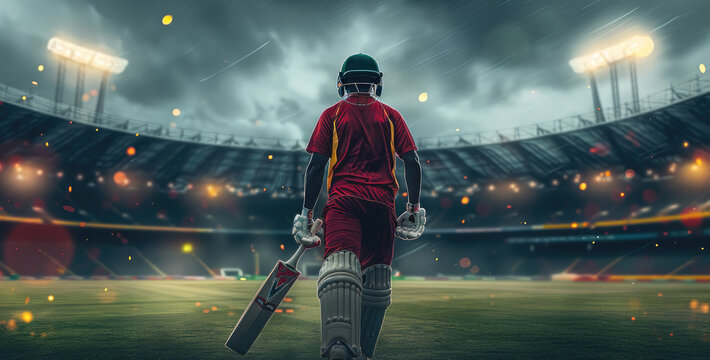Cricketer batsman hitting a shot during a match on the pitch