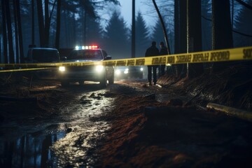 Prominent yellow crime scene tape emblazoned with the words "CYBER CRIME" repeatedly crosses over a blurred background