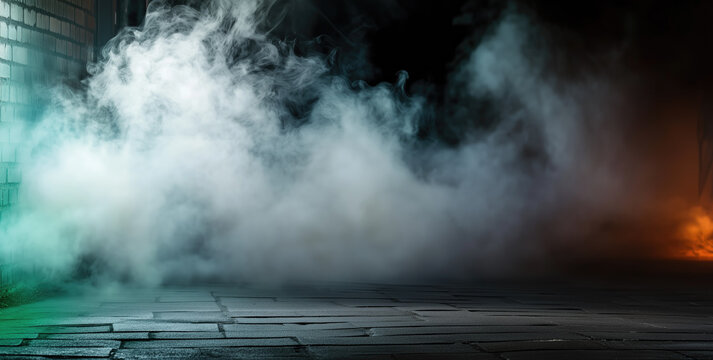 Horror a lonely silhouette in a gloomy foggy forest, maniac thriller the darkness of the night