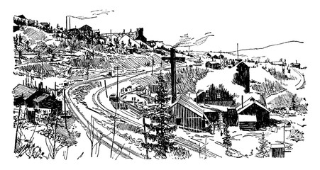 View from the American Eagles Overlook near Victor, Colorado, U.S.A., of the active Cripple Creek mining district open cast gold mine