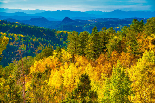 Cripple Creek Colorado Fall Foliage with Rocky Mountains