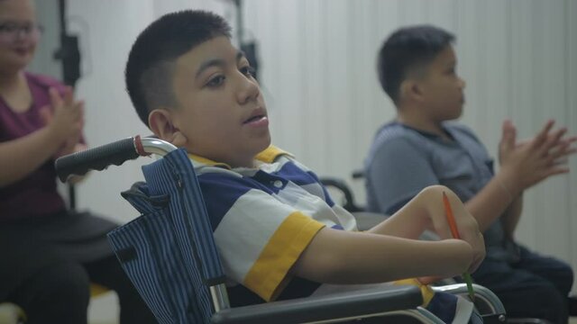 Education concept of 4k Resolution. Disabled children are studying in the classroom.