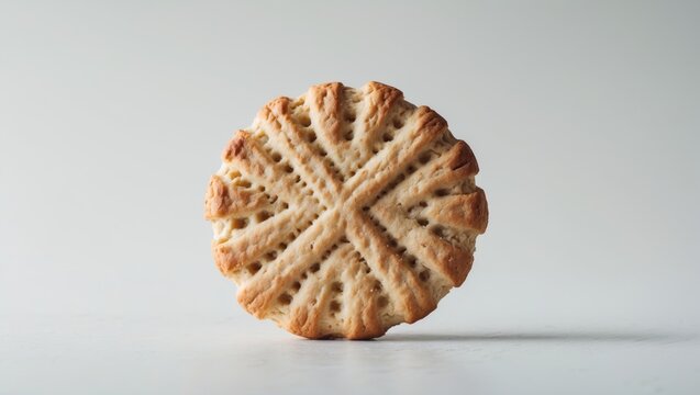 A biscuit standing alone against white background.