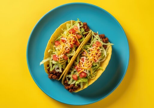 Ground Beef Tacos on a plate, top view