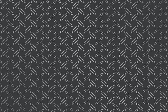 Dark gray diamond-plate metal texture with light gray crisscross pattern. Overhead view, seamless industrial background for grunge, machinery, or rugged design projects. Neutral lighting.