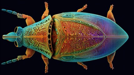 Close-up of a vibrant beetle exploring a textured surface in nature