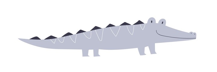 Cute baby crocodile in Scandinavian style. Funny happy child animal, Scandi croc character. Fairytale tropical reptile. Childish colored flat vector illustration isolated on white background