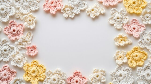 Crafting crochet patterns small flower motifs home decor visual art bright and cheerful artistic concept