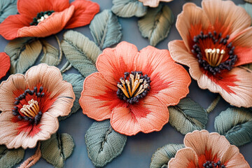 flowers embroidered on fabric, floral themed designs