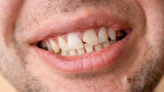 Close-up of a man's open smile with a broken tooth before a dentist appointment