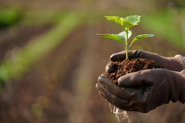 Farmer wearing sturdy boots walking through cultivated cornfield rows, carefully inspecting young sprouts emerging from the rich soil