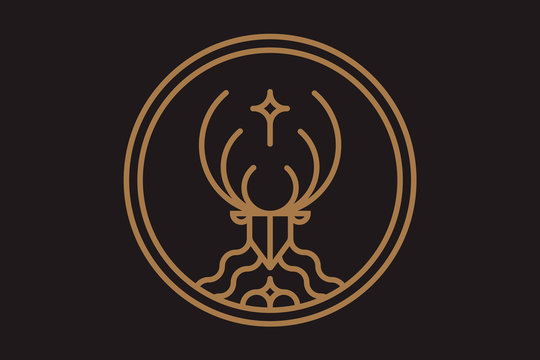 Linear hipster deer logo with cross