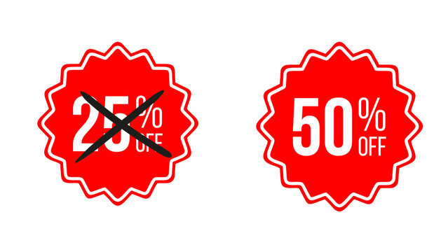 50% OFF Sale Sticker | Bold Red Starburst Discount Badge with '25% OFF' Crossed Out | Clearance, Promotion, and Price Reduction Vector Icon PNG