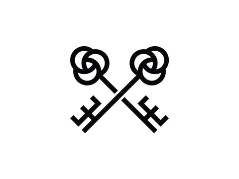 crossed keys silhouettes vector illustration Royal gold key icon. Modern real estate logo template. Crossed classic keys symbol. Luxury hotel sign. Vector illustration.