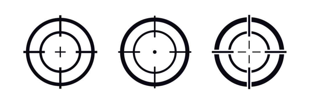 Target icons set sight sniper symbol isolated on a white background, crosshair and aim vector stylish for web design. Flat line design style modern Centricity icon.