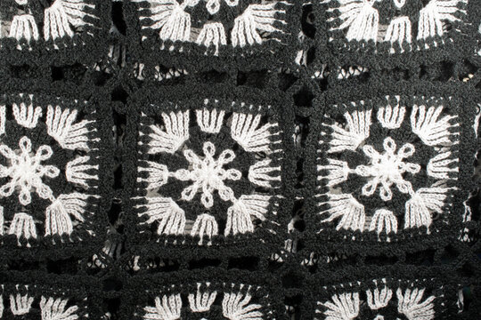 Closeup of crochet pattern in a heart, two hooks, other patterns