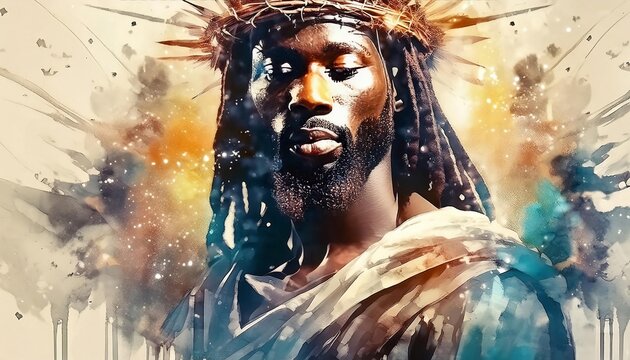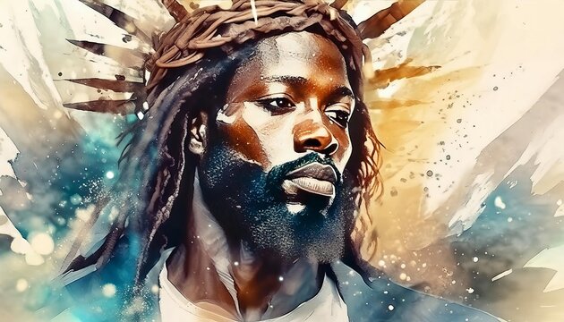 Portrait of African Christ - Depiction of Black Jesus Christ - Peaceful and Calming Image - African Christians Savior of Humanity and Mankind - Unorthodox Image of Christianity