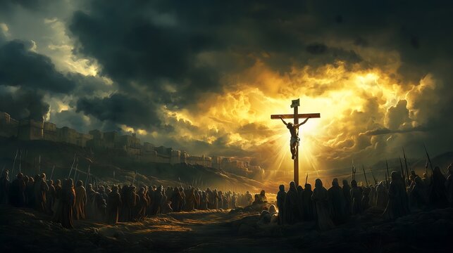 A Dramatic Scene of Jesus on the Cross at Golgotha, Crucifixion, Christian Faith, Jesus Christ, Holy Sacrifice, Redemption, Bible Story, Salvation, Biblical Event, Sacrifice for Humanity