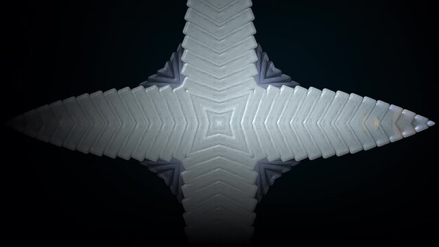 Abstract 3d render waves flow towards central steel cross. Chrome plated geometric tracery in futuristic industrial decoration. Modern corrugated structure with rotation.
