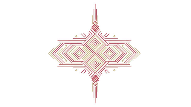 Gray line art of a rounded rectangle with an ornate cruciform geometric pattern