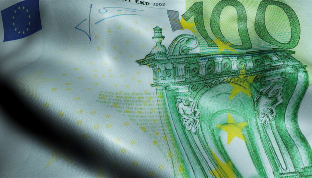 Rendered image of a crumbling Euro symbol