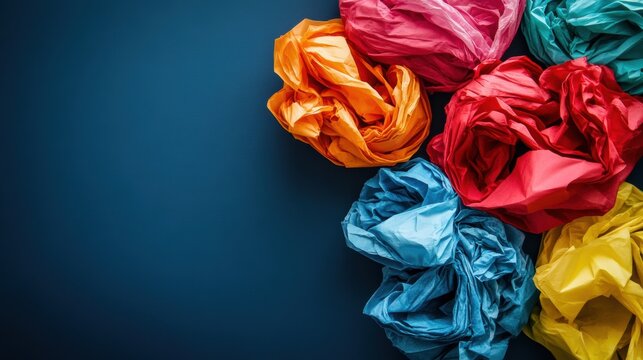 Colorful crumpled paper balls in a row with arrows indicating downward and upward trends.