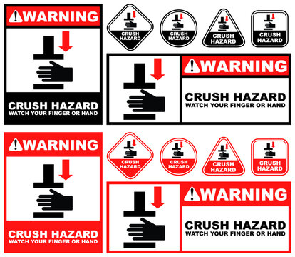 Cut and crush hazard warning sign and labels