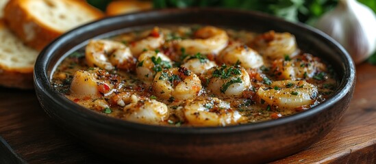 Garlic Shrimp Scampi in a rustic bowl with crusty bread.