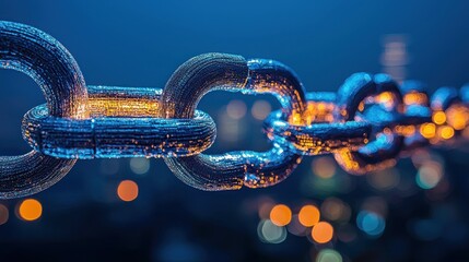 Glowing chain links, city night, connection, security, technology