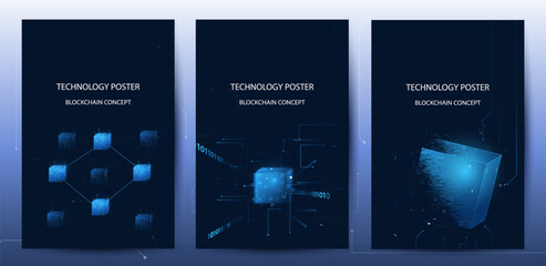 Blockchain technology poster set. Digital sharing data connection network with cryptocurrency concept