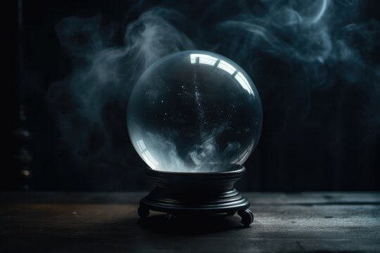Mystical glowing orb with ethereal energy conjured by unseen hands against smoky background